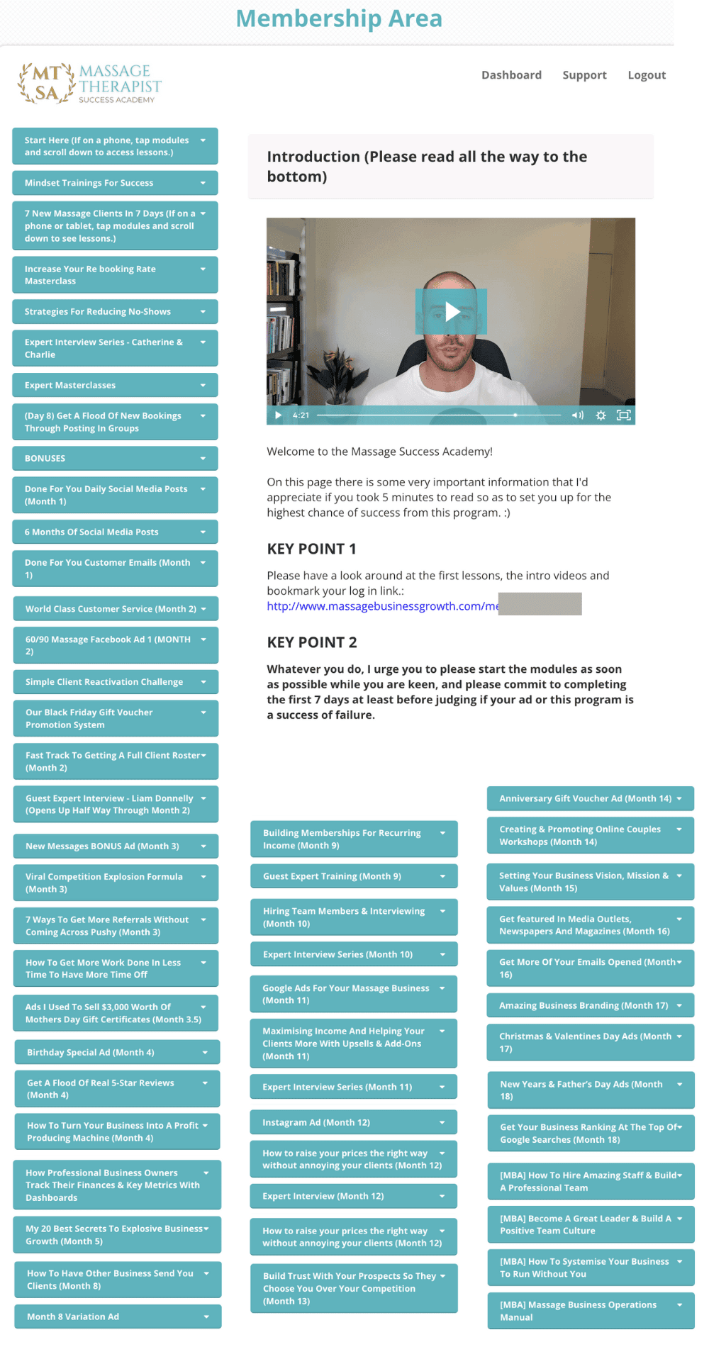 Once your order is completed, on the next page you will be given immediate access to the 7 clients in 7 days program as well as the Massage Therapist Success Academy.